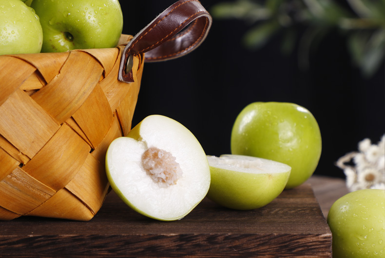 蘋果酸甜可口,營養豐富,是老幼皆宜的水果之一。它的營養價值和醫療價值都很高,被越來越多的人稱為“大夫第一藥”。許多美國人把蘋果作為瘦身必備,每周節食一天,這一天只吃蘋果,號稱“蘋果日”。蘋果還被稱為智慧果,因為據說亞當、夏娃受魔鬼所化的毒蛇誘惑,偷吃的果實就是蘋果。 1、蘋果中含有大量的果膠,果膠進入人體后,能與膽汁酸結合,像海綿一樣吸收多余的膽固醇和甘油三酯,然后排出體外。同時,蘋果分解的乙酸有利于這兩種物質的分解代謝。另外,蘋果中的維生素、果糖、鎂等也能降低它們的含量。2、.蘋果含有充足的鉀,可與體內過剩的鈉結合并排出體外,從而降低血壓。同時,鉀離子能有效保護血管,并降低高血壓、中風的發生率。3、蘋果中含有的多酚及黃酮類天然化學抗氧化物質,可以減少肺癌的危險,預防鉛中毒;而蘋果特有的香味可以緩解壓力過大造成的不良情緒,還有提神醒腦的功效。4.、蘋果中富含粗纖維,可促進腸胃蠕動,協助人體順利排出廢物,減少有害物質對皮膚的危害;而蘋果中含有的大量的鎂、硫、鐵、銅、碘、錳、鋅等微量元素,可使皮膚細膩、潤滑、紅潤有光澤。5、蘋果中含有能增強骨質的礦物元素硼與錳。美國的